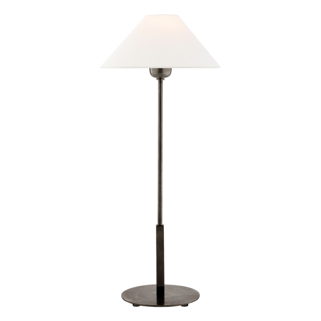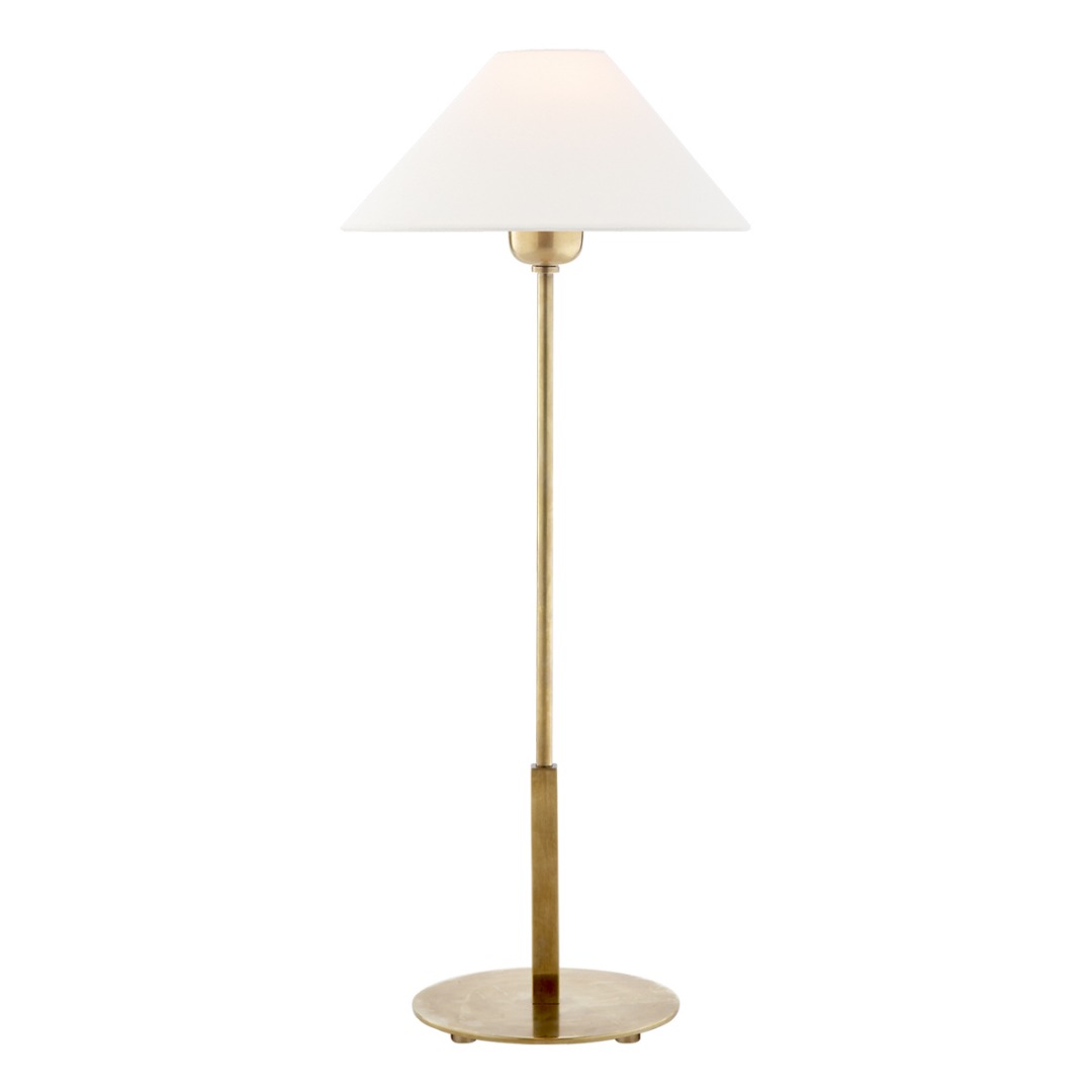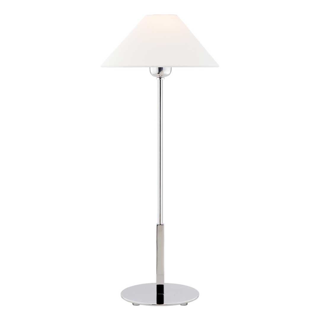 Table Lamp available in Polished Nickel, Hand-Rubbed Antique Brass, or Bronze. Linen shade.