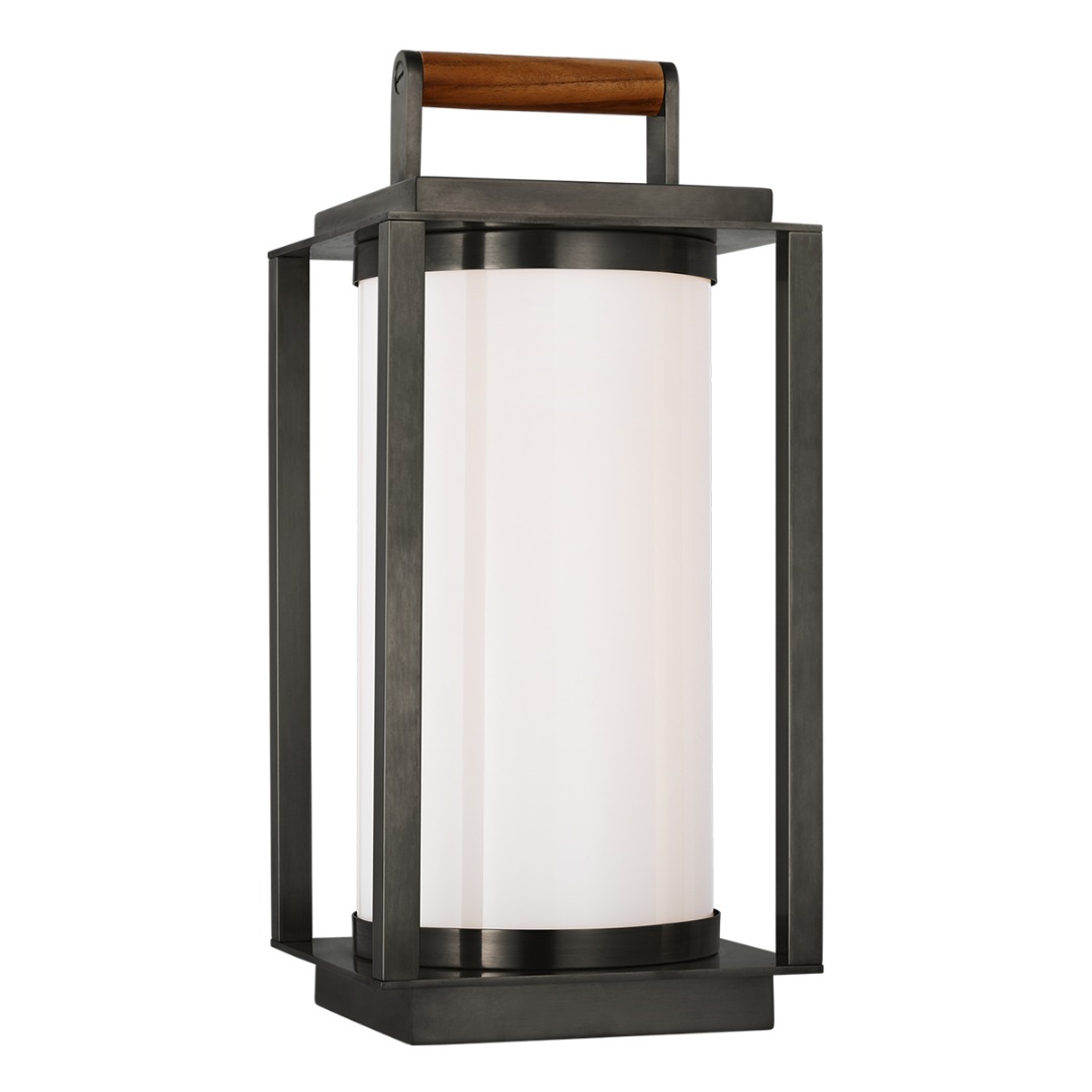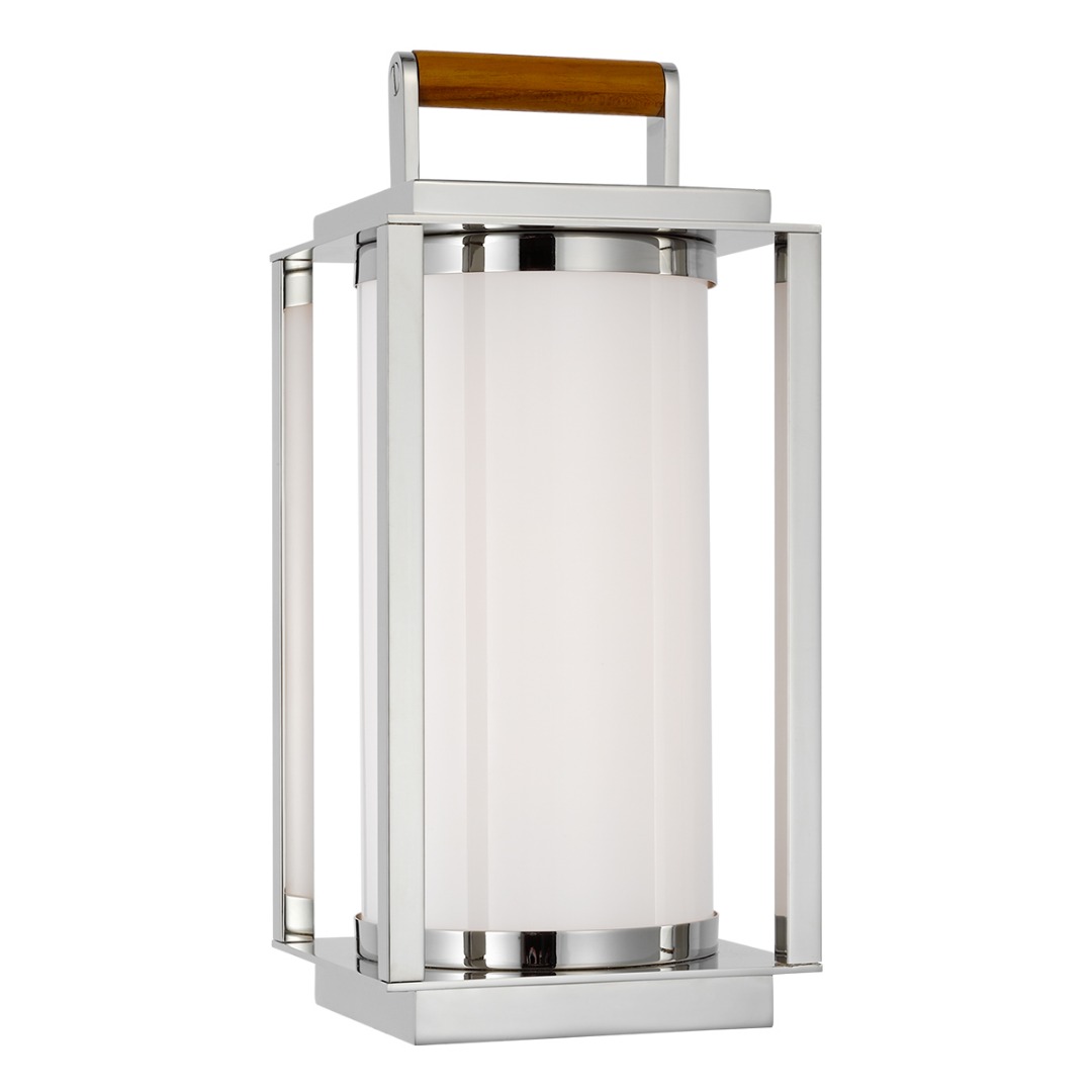 Table Lamp available in Polished Nickel and Teak, Natural Brass and Teak, or Bronze and Teak.