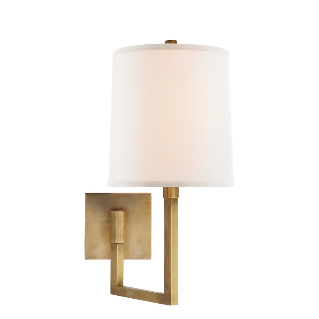Soft Brass with Ivory Linen Shade.